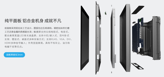 6、圓角鋁合金外觀,超薄3mm嵌入式設計,可橫豎壁掛共用